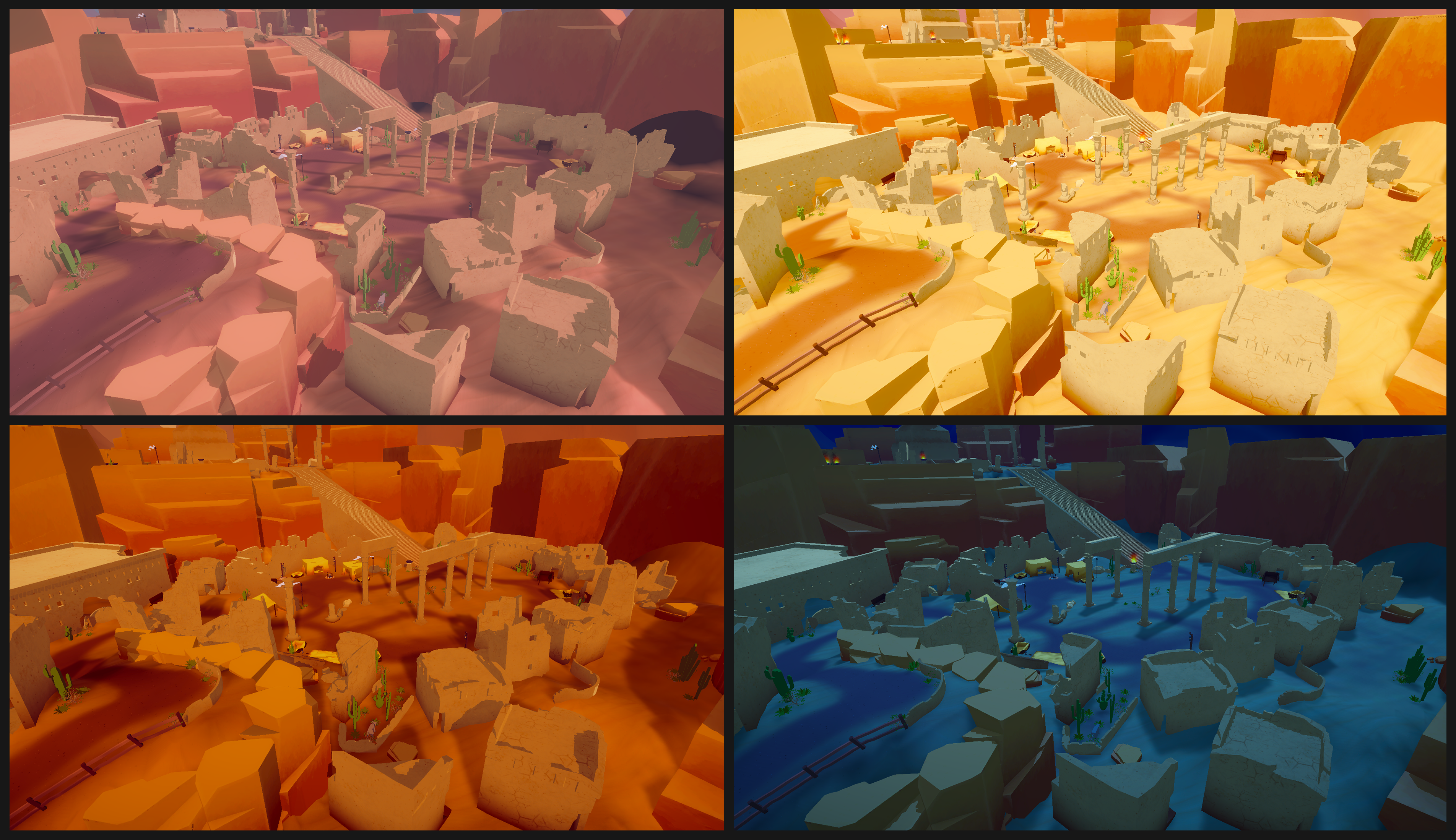 Beginning as a student project and now available on Steam, Sun Spear was created over 7 months by a team of 5, and features complex combat, a dynamic day/night cycle, 3 different bosses with unique attacks, and a fully realized and rich environment. My role on the project was production, programming and design. On the programming side, I was responsible for the enemy AI, the design of the boss encounters, and the dynamic day/night cycle. Additionally, I designed and implemented the UI for the game, and created the stylized shaders in the game.
