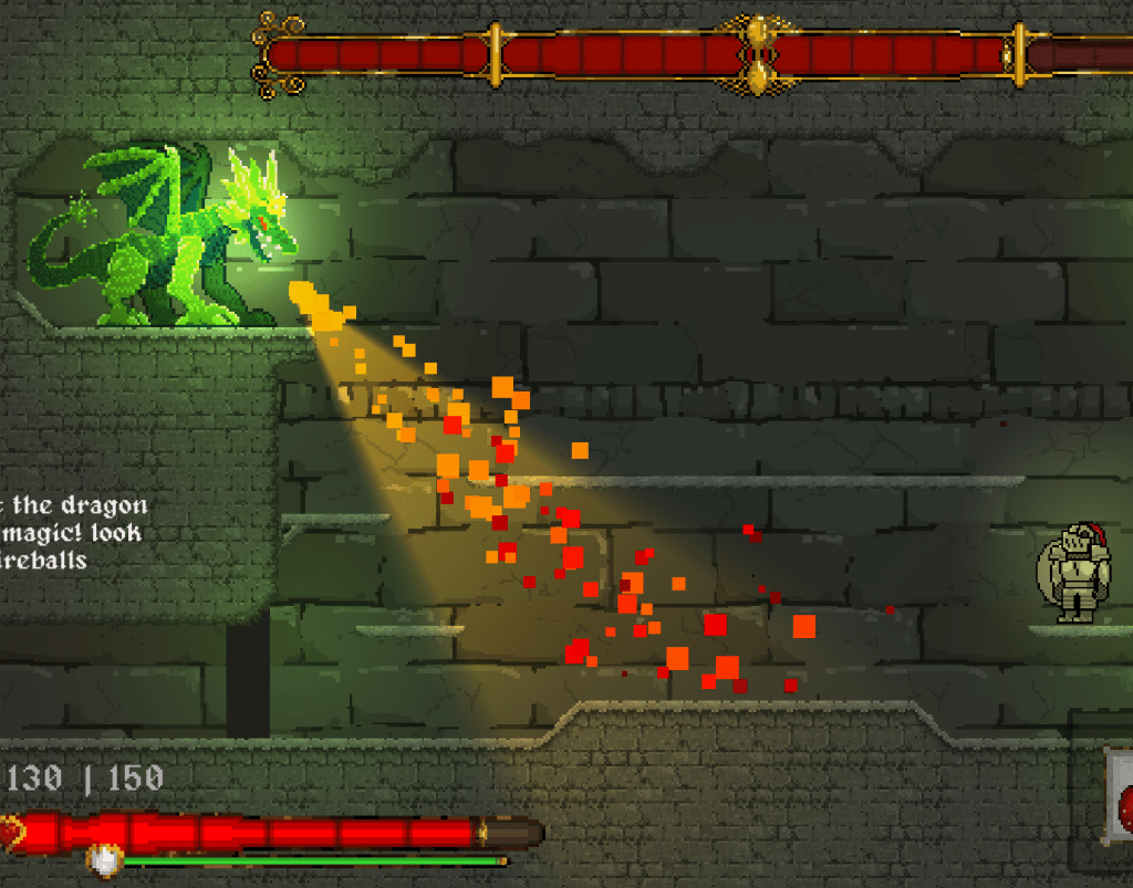 Whoever heard of a knight without a sword? this project is a short roguelike platformer game where the titular knight must use his shield to block deadly traps and find his way through a smoke-filled, procedurally generated castle, all before defeating a dragon with multiple stages and different attacks.